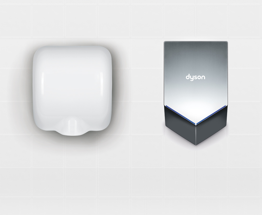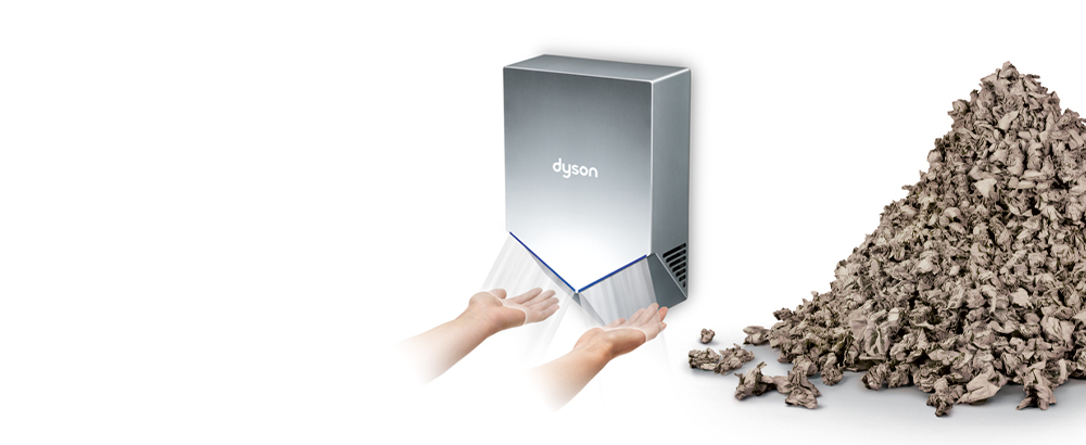 Los secadores de manos Dyson Airblade™ producen hasta un 85% menos CO2 que otros secadores de manos y hasta un 85% menos que las toallas de papel.1