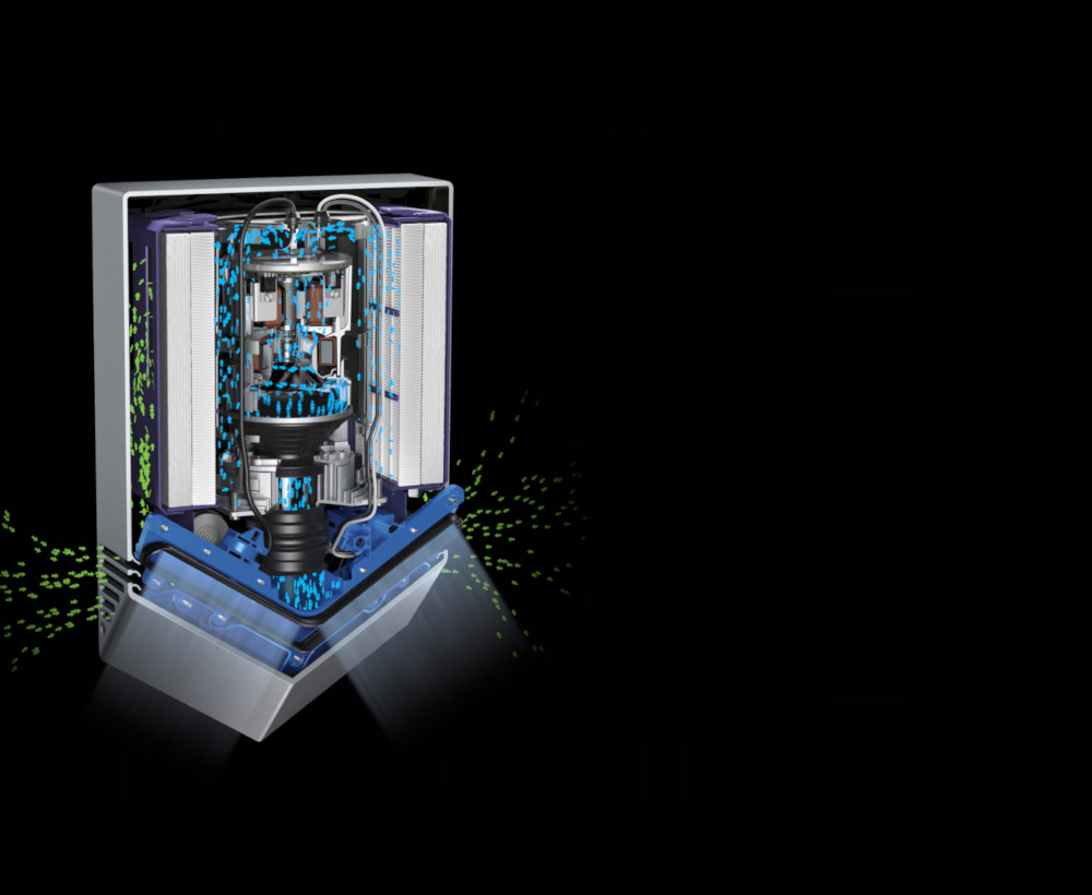 El impulsor y el difusor interno rediseñados generan unos flujos de aire optimizados para producir el menor sonido posible.